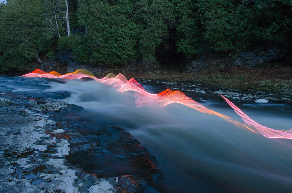 Der Fotograf Stephen Orlando aus Ontario hat mit menschlicher Bewegung beim Kajak-Fahren  und programmierbaren LED Sticks experiementiert.